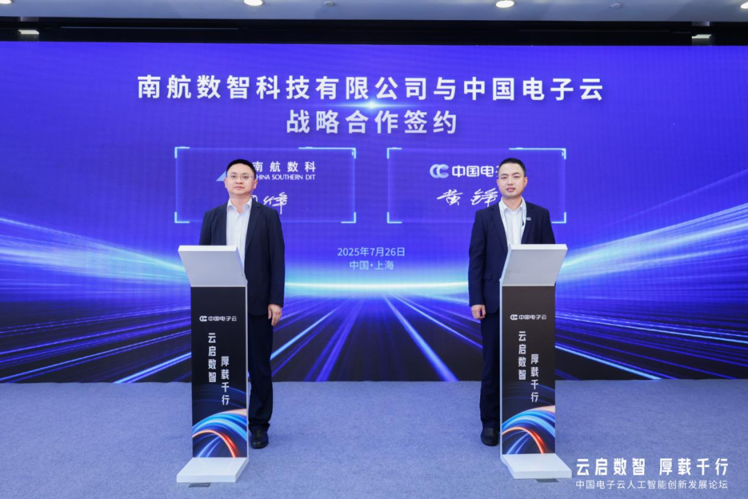 在论坛的签约仪式环节,南航数科与中国电子云正式签署战略合作协议,双方将围绕民航领域自主安全应用研发、数字化创新、数据资产应用等展开深度合作,共同推动中国民航产业的高质量发展与国产化升级。双方计划在安全运行、智能管控、航网优化等多个领域推出系列创新应用,共同书写智慧民航建设的新篇章。这一合作标志着我国民航业数字化转型迈入新阶段,将为智慧民航建设注入强劲动能。