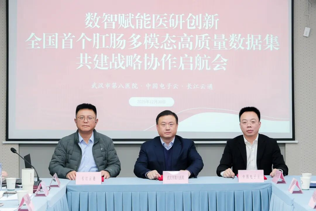 为积极响应“健康中国”战略部署,加速推动医学研究与数智技术深度融合,近日,全国首个肛肠多模态高质量数据集共建战略协作启航会在武汉市第八医院顺利召开。武汉市第八医院党委副书记、院长邹枕玮,党委委员、副院长李钢琴,副院长邹贤军,副院长罗程;中国电子云副总裁、长江云通董事长胡超等出席会议。