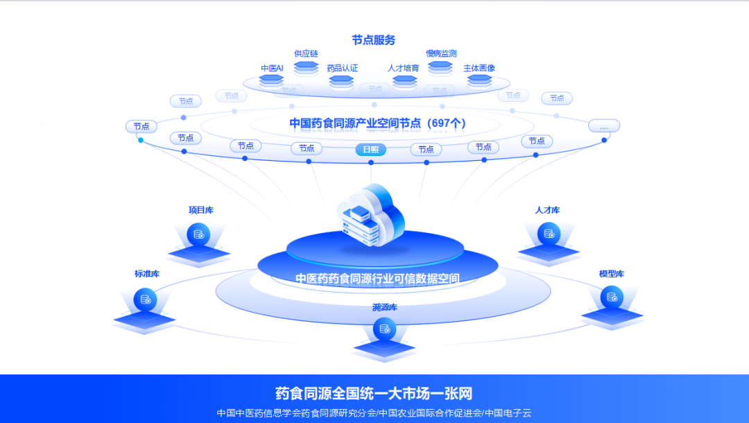 在数智化时代下,急需基于一体化行业数据基础设施,面向民生健康药食同源领域,将诊疗、中医、康养、培训、供应、物流、种养殖等环节所需的数智要素进行打通与流通,服务于药食同源产业发展每个环节,实现药食同源供需资源高效配置与跨地域流通,形成产业统一大市场。